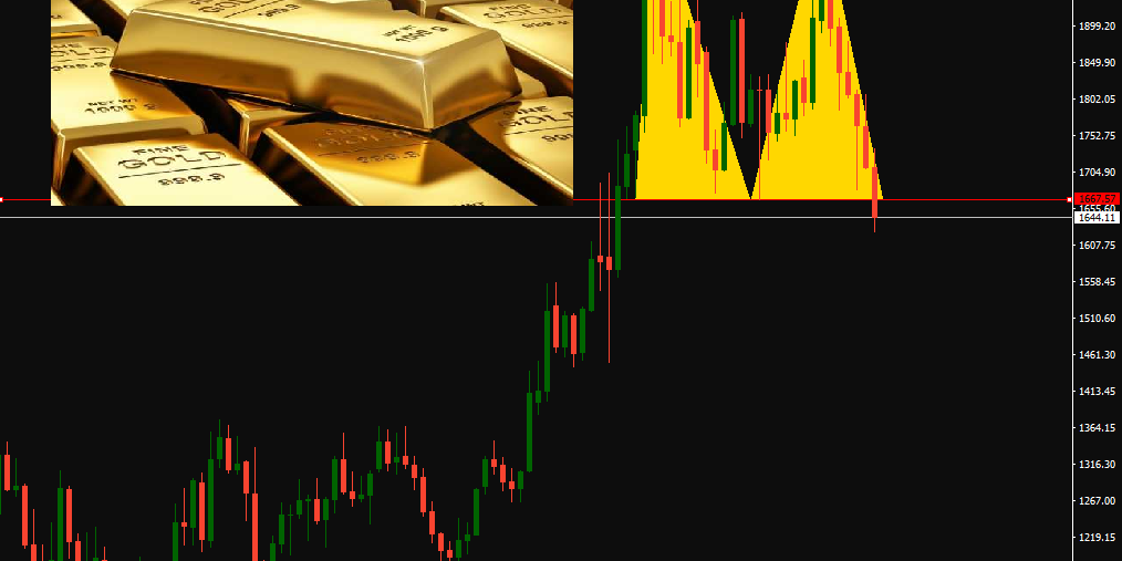 L’arrêt de perte (SL) : Après la clôture de deux bougies au dessus de la ligne rouge ( 1667.57).